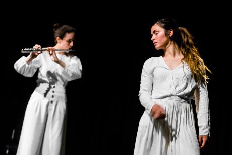 Das Konzertprogramm besteht aus fünf klassischen Kompositionen für Flöte, Gitarre, Klavier und Cello. Jedes dieser Stücke wird gleichzeitig von einem mitwirkenden Künstler interpretiert und durch sein eigenes Medium (Tanz, Visual) transformiert und bildet ein multimediales Erlebnis für das Publikum.